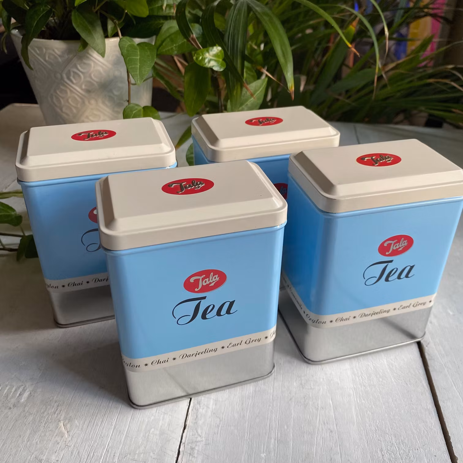 4 Teburkar från Tala! Dessa ikoniska retroburkar är inte bara en praktisk förvaringslösning, utan också ett elegant tillskott till ditt kök. Med dimensioner på 8 x 11 cm, är de perfekta för att hålla dina teblad fräscha och välorganiserade.