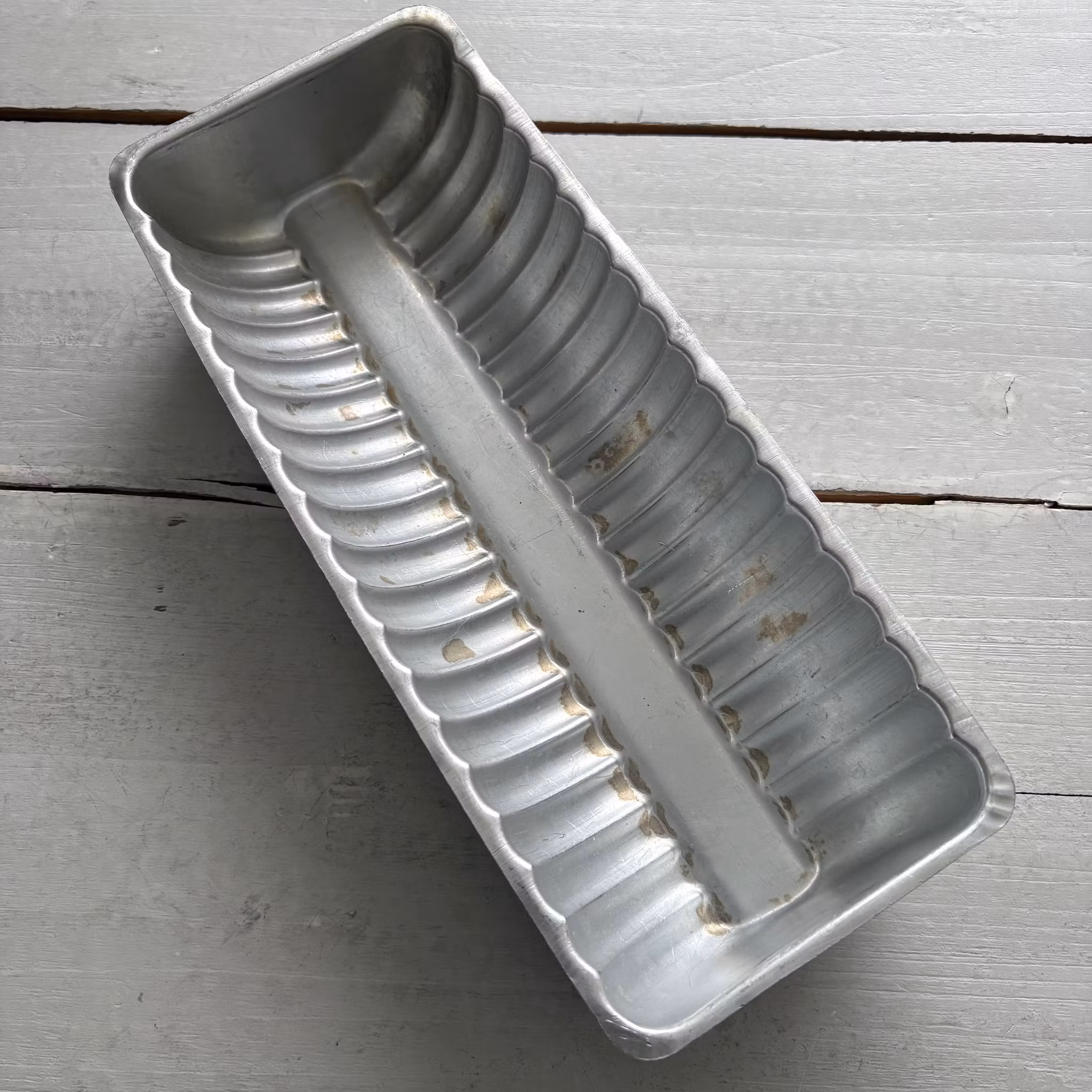 Formen är second hand, vilket ger den unik karaktär och charm. Den har spår, märken och några små fläckar, men är fortfarande fullt användbar och redo att hjälpa dig skapa läckra bakverk.