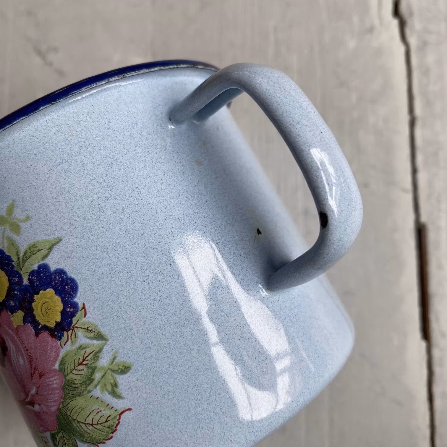 Förgyll ditt kök med en touch av nostalgi! Söta emaljmuggar prydda med blommor är inte bara praktiska, de är också en fröjd för ögat och ett charmigt inslag i din inredning. Dessa vintagepärlor har rest genom tiden från forna Jugoslavien och landat hos oss på KlaraForm. Med endast tre exemplar i lager är varje mugg unik och bär på sin egen historia. Trots att de är second hand ser de ut som nya på insidan - ett tecken på att de har värderats och vårdats genom åren. Visst finns det spår av liv i form av kantstötningar, men just dessa skavanker tillfogar karaktär och autenticitet.
