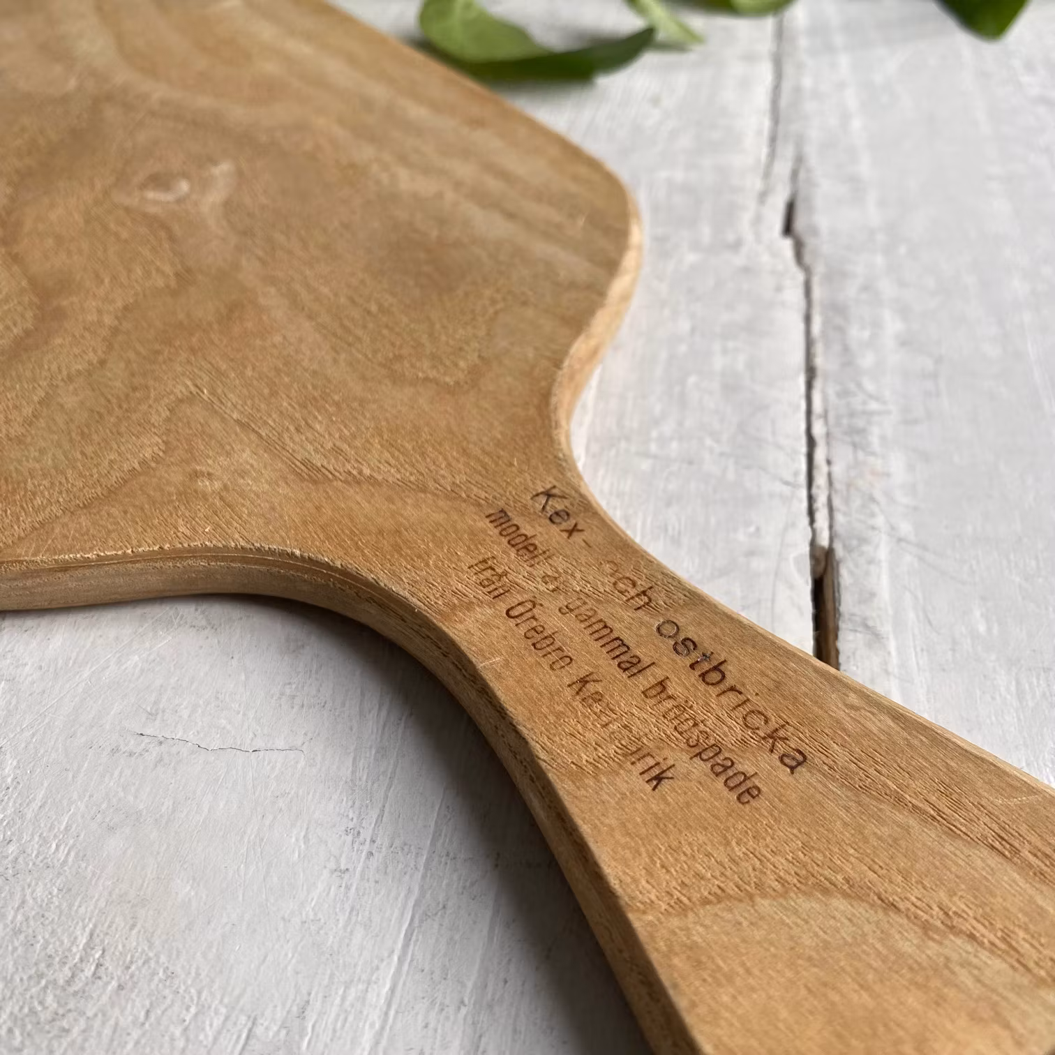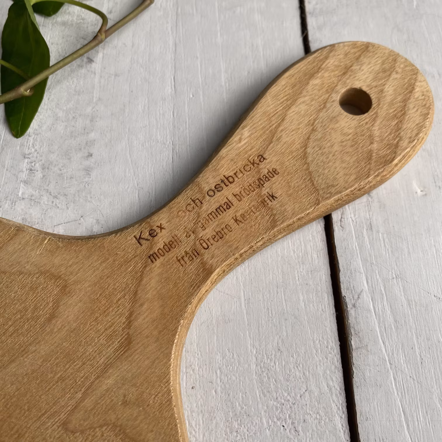 Kex och ostbricka, modell av gammal brödspade från Örebro keramik.