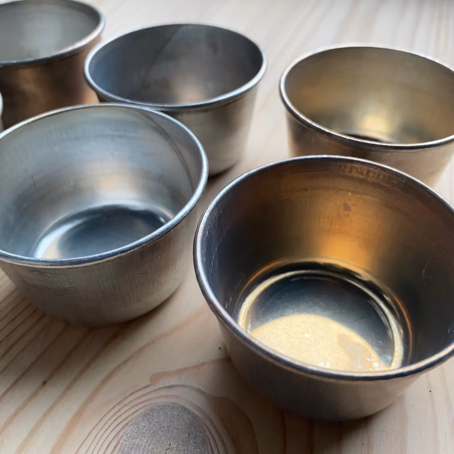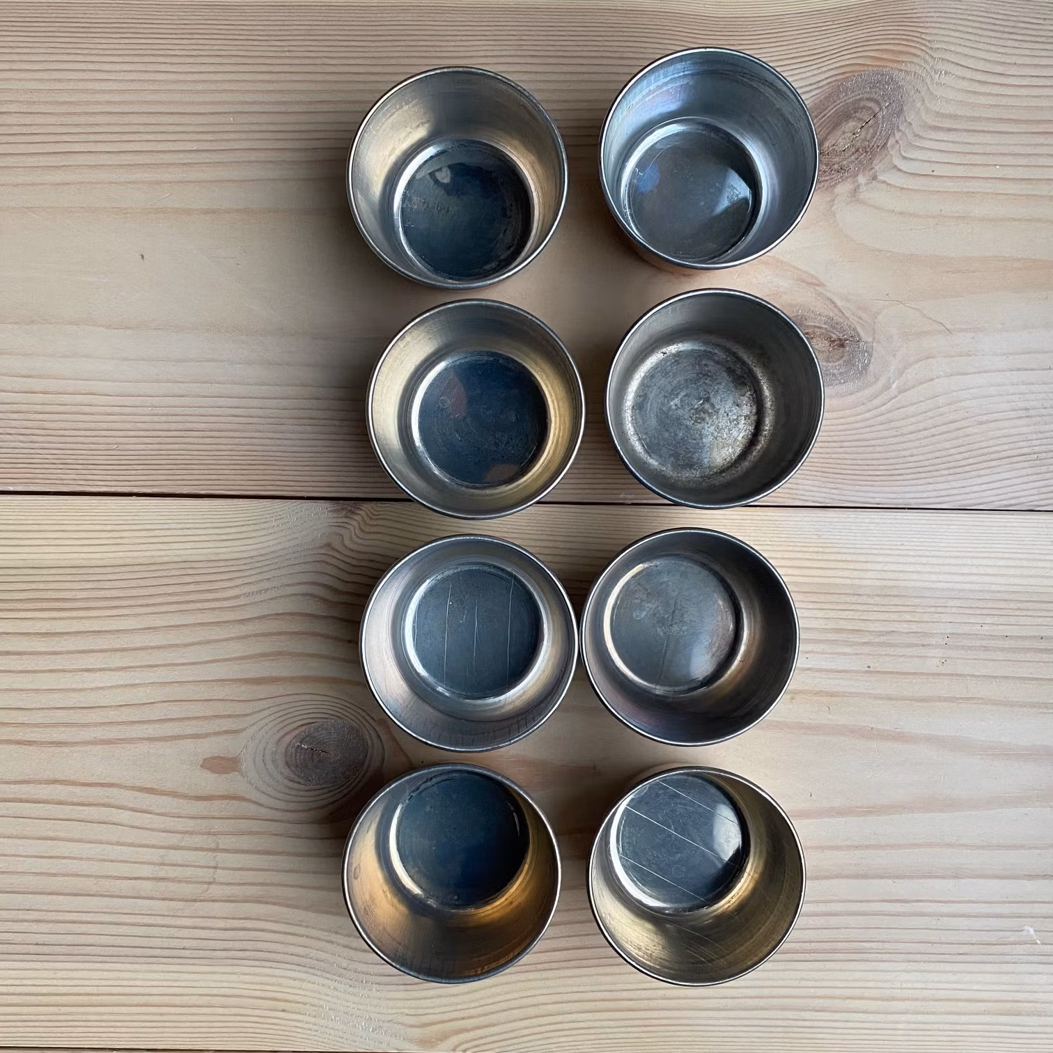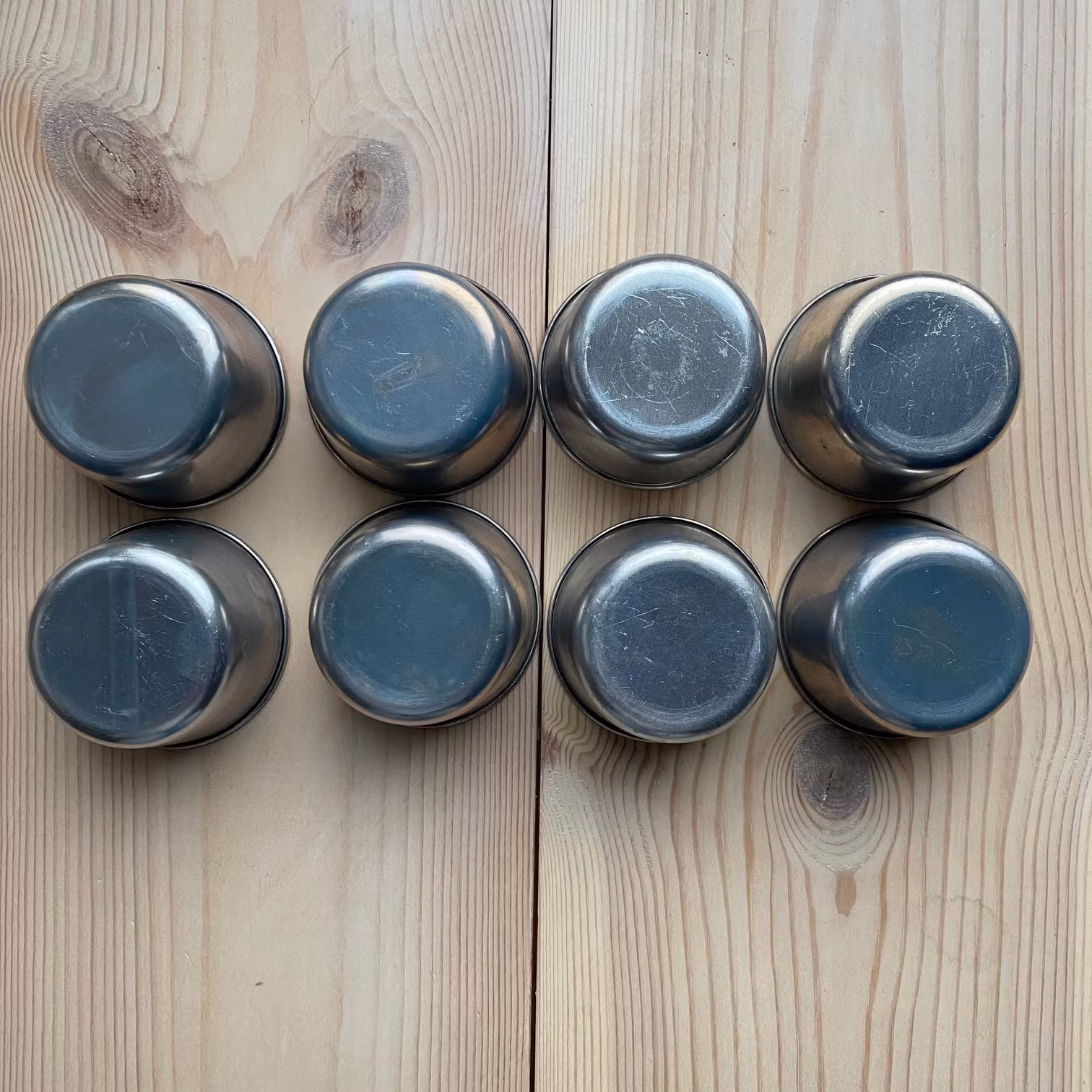 Formarna är second hand och har spår av bakning, vilket ger dem en charmig, genuin vintagekaraktär. Idealisk för dig som söker vintage bakformar, metallformar för dessert och muffins, eller äldre bakredskap med historia.
