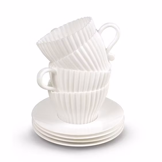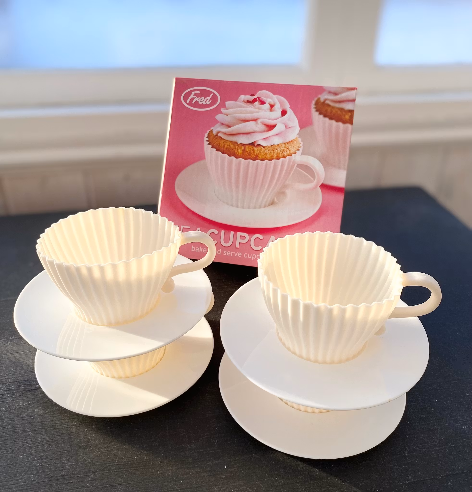 Fred's Tea Cupcakes! Denna förpackning innehåller 4 begagnade Tea Cupcake-muffinsformar i silikon. Formarna är i fint skick och ser ut som en tekopp. Silikonmaterialet är lätt att använda och rengöra. Det ger dig möjlighet att baka muffins eller cupcakes med en unik och kreativ touch. Med denna form kan du skapa de mest fantasifulla och smakrika bakverk. Det är inte bara enkelt, det är också roligt! Du kan använda denna form för att baka muffins som du sedan kan servera på festliga tillställningar, eller sälja dem till andra.
