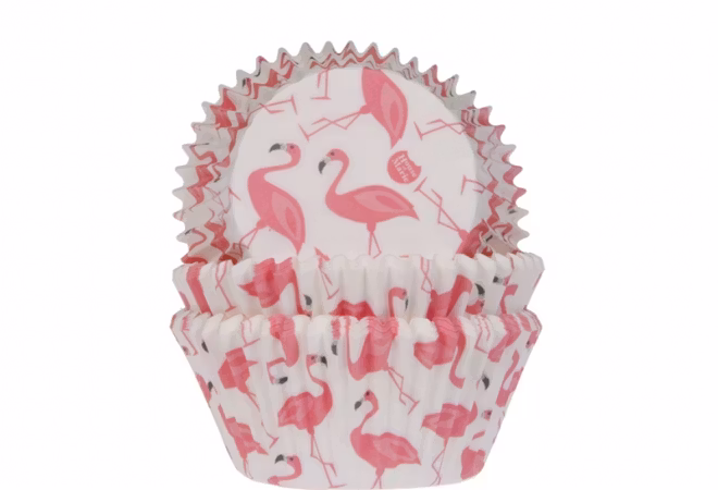 Muffinsformar med flamingos som är gjorda av ett kvalitetspapper från FSC-certifierade skogar. Muffinsformarna är "greaseproof", smörsäkra och de håller färg och form bra genom hela bakprocessen.