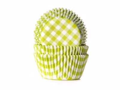Grön rutiga muffinsformar som är gjorda av ett kvalitetspapper från FSC-certifierade skogar. Muffinsformarna är "greaseproof", smörsäkra och de håller färg och form bra genom hela bakprocessen.