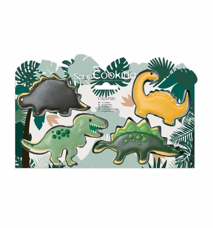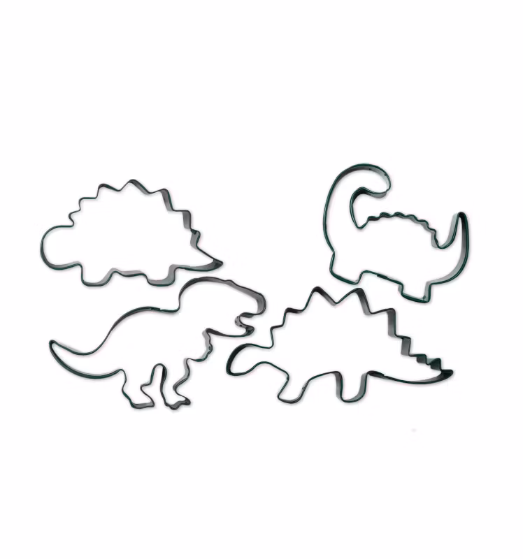 Ett set med 4 stycken olika kakformar med motiv av coola dinosaurier. Perfekta för att göra kakor till kalaset med dinosaurie tema. Kakformarna är tillverkade i rostfritt stål.