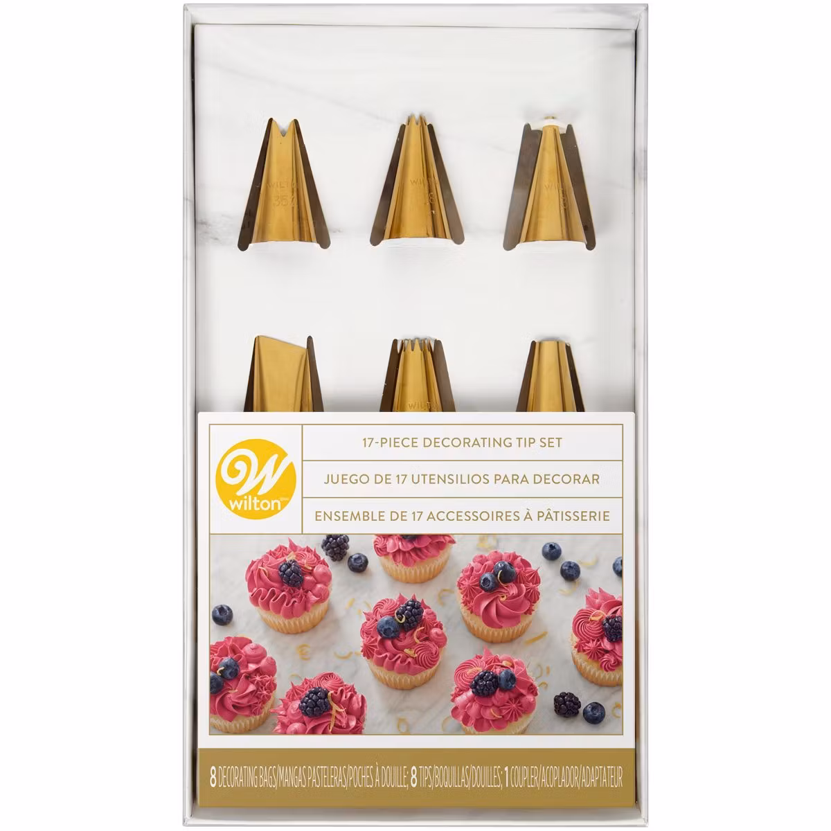 Dekorera tårtor och cupcakes med dessa gyllene dekorationstyllar från Wilton.