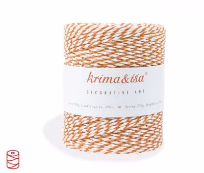 Tvåfärgat bomullssnöre i orange och vit. Med bakers twine kan du slå in fina paket som kommer bli mycket uppskattade av mottagaren. Häng även på en hängetikett där du skriver ett vackert meddelande för en personlig touch på paketet. Det fina bomullssnöret går även att använda till pyssel eller till när du sätter ihop buketter med blommor. Användningsområdena för vad du kan göra med en bit bomullssnöre är oändliga!