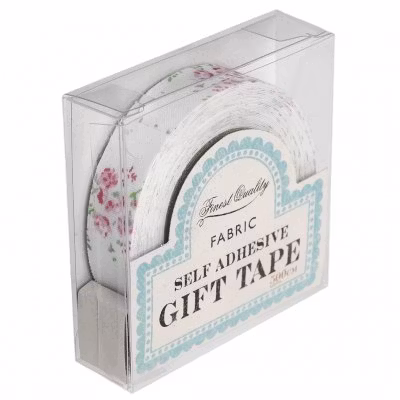 Dekorativ tejp till scrapbooking, paketinslagning mm. Längd ca 5 meter. Bredd ca 15 mm. Material: tyg
