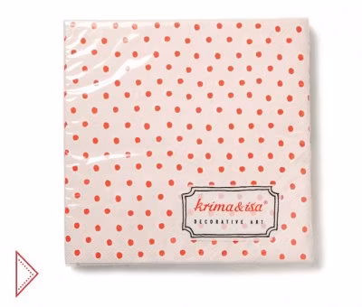 Söta rosa pappersservetter med röda prickar. Servetterna är av ett klorinfritt papper och de är färgade med vattenbaserad färg. Servetterna är från krima&Isa och dem är tillverkade i Europa.