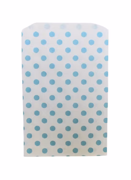 En platt kalaspåse i papper. Passar perfekt att använda som godispåse för att ha godis i till fiskedammen eller att fylla dem med snacks såsom popcorn, nötter, kakor och annat gott. Går även att använda som kuvert till födelsedagskort eller presentpåse för att ge bort mindre gåvor.