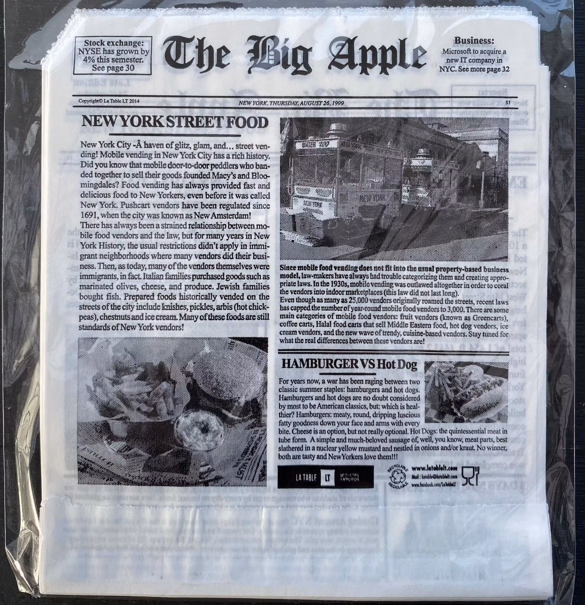 Vår stilrena hamburgerficka ”New York” är det perfekta tillbehöret för grillfesten i sommar! Fickan är tillverkad av vaxat smörpapper och håller värmen samtidigt som den gör att hamburgare, tacos, wraps, munkar, popcorn, snacks och godis håller sig hela och enkla att äta.
