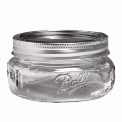 Höjd 5 cm. Locket är 8,5 i diameter (WideMouth) Glasburken går att diska i maskin, men locket ska handdiskas och torkas torr. BPA Fri, Made in USA