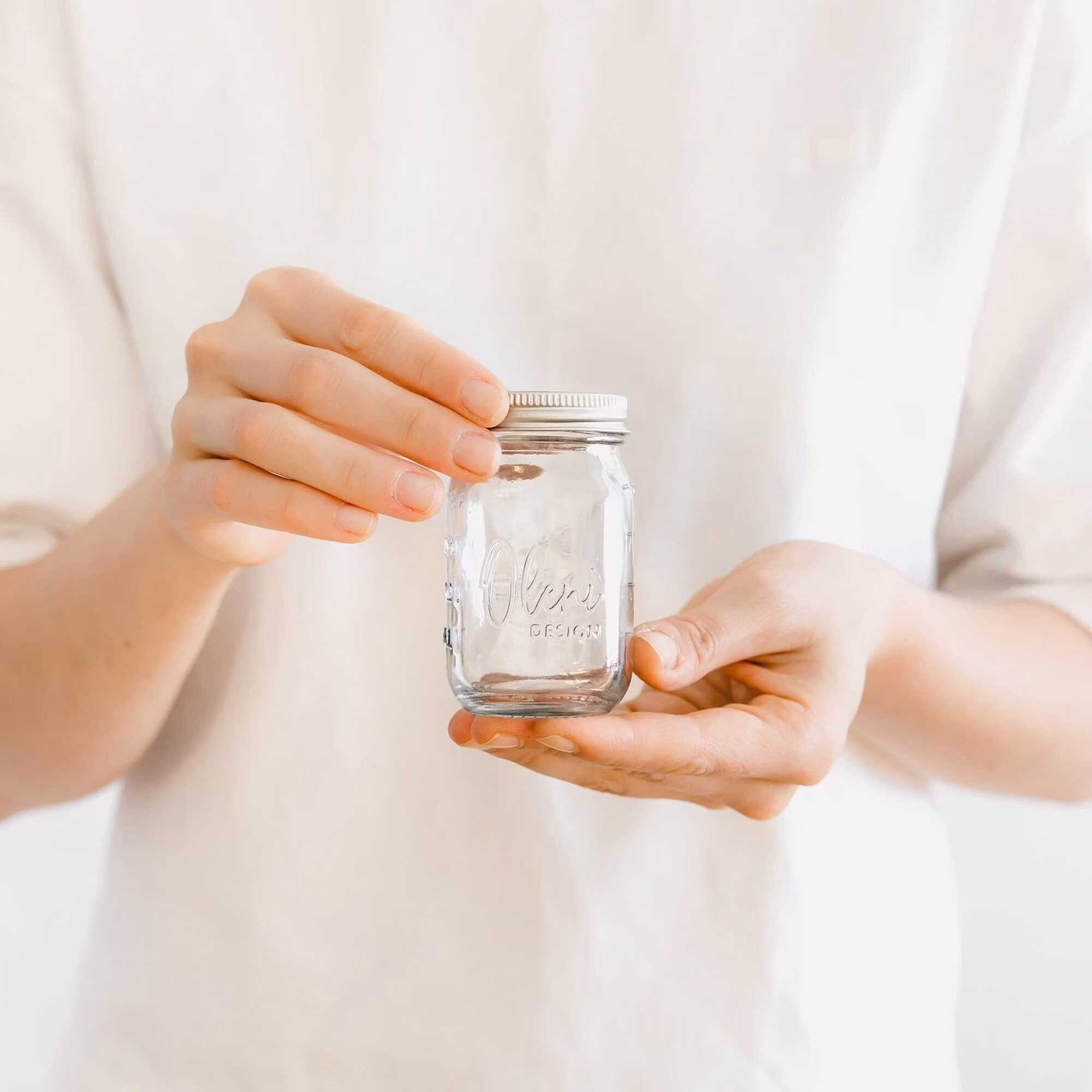Mini Jar Love! Oleni Mason Jar i miniformat är perfekt för kryddor eller små presenter i glas. Kryddor kan enkelt och överskådligt organiseras med Mini Jars. Glaset är smak- och luktneutralt, vilket hjälper till att hålla kryddorna färska och bevara deras hållbarhet längre. Med passande kryddlappar kan du snabbt märka innehållet på utsidan. Genom glaset är det lätt att se vad som finns i burken. Inte bara kryddor – även små presenter, som födelsedagspresenter, gåvor till gäster eller bröllopsminnen, passar perfekt. Observera: Oleni Mason Jar Mini är ett dekorglas och är inte lämpligt för konservering.