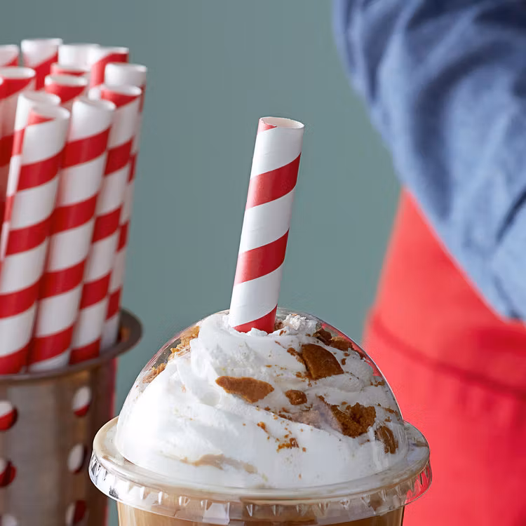 Stora papperssugrör som är biologiskt nedbrytbara och där både papperet och trycket är godkänt för livsmedel. Stort sugrör för milkshake, smoothies mm.